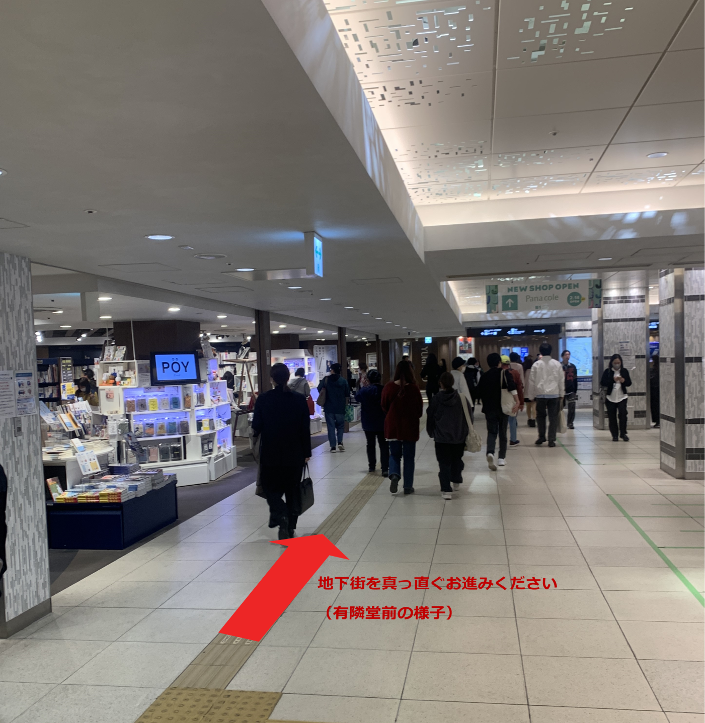 ②「中央南改札」から出たら改札を出て左、「中央北改札」から出たら改札を出て右に進みます。