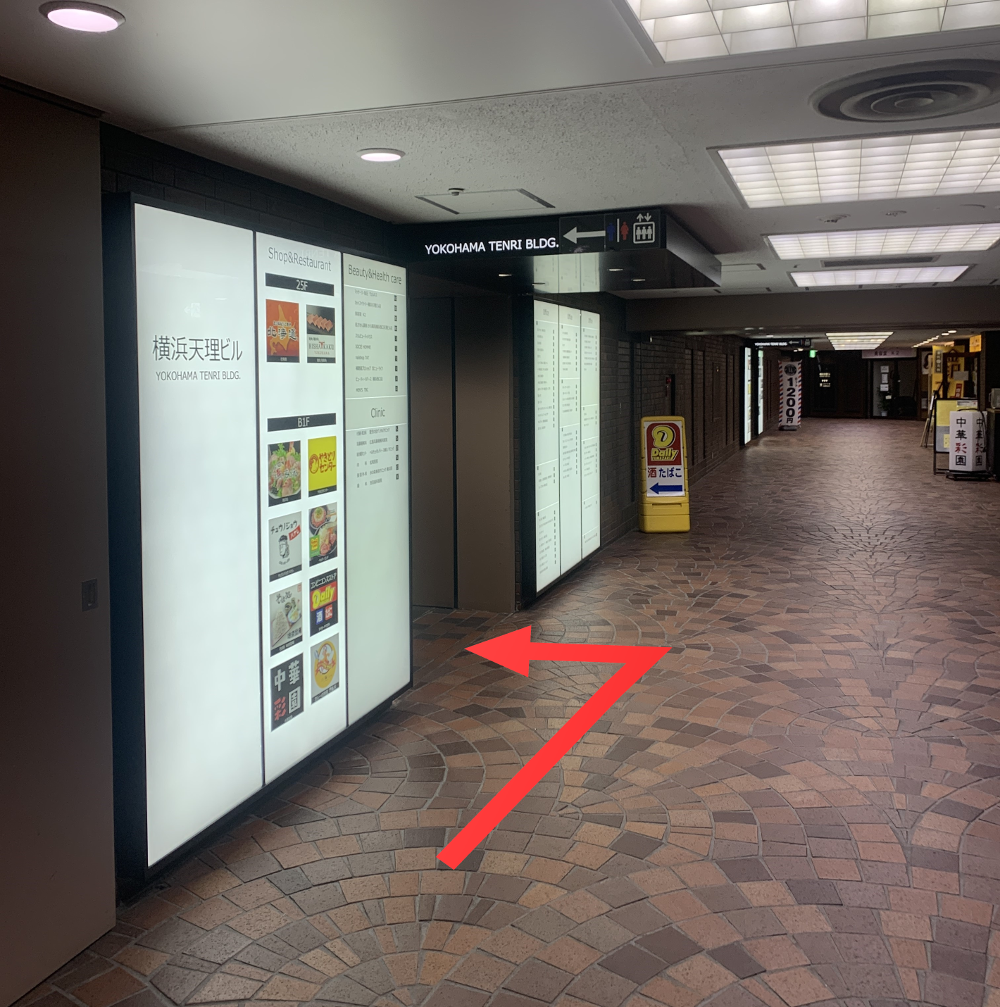 ⑦後はまっすぐ進むと横浜天理ビル(地下飲食店街)です。